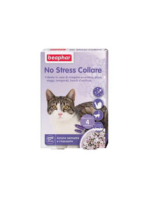 Beaphar No Stress Collare per gatti riduce i problemi comportamentali causati da situazioni di stress nei gatti di tutte le razze ed età. Utilizzando ingredienti sicuri e naturali a rilascio graduale nel corso di un periodo di 3-4 settimane, contribuisce a rassicurare e tranquillizzare i gatti nei momenti più delicati della loro giornata. Beaphar No Stress Collare per gatti contiene Valeriana e Lavanda, piante ben note per le loro proprietà fitoterapeutiche e calmanti, in grado di aiutare a gestire lo stress e l’ansia. Il Collare è utile per ridurre problemi comportamentali come: graffiatura delle superfici, marcatura territoriale e miagolio eccessivo. Inoltre, l’effetto prolungato nel tempo del Collare aiuta ad alleviare gli stati di agitazione derivanti dall’arrivo in casa di neonati o di un nuovo animale, trasferimento in una nuova casa, viaggi in auto frequenti, visite dal veterinario, paura del trasportino, fuochi d’artificio o temporali. Una volta indossato, la Valeriana viene rilasciata immediatamente e il gatto inizierà a rilassarsi entro un’ora dall’applicazione.